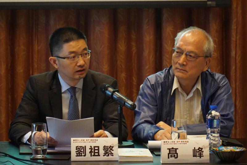 圖:劉祖繁(左)與高峰介紹紀念蔡元培誕辰的系列活動