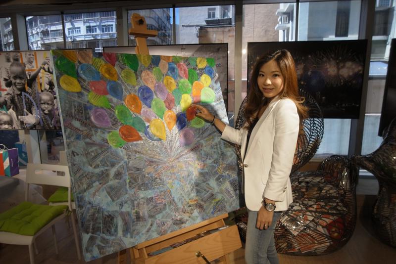 記者走進李楚洳位於尖沙咀的工作室,牆壁掛滿由她自創的「相中畫」,而工作台上擺着她正在創作的拼貼新系列。雖出身本港富裕家庭,卻始終關心周邊發生的故事,並將它們記錄下來,再結合繪畫、攝影和電腦技術創作「相中畫」。縱使在三月份佳士得專場拍賣會上,其混合媒材作品《中英街》以十三萬七千五百港元成交,成績都屬好滿意,然她同時更希望作品能反映當今社會現狀,令人們有所得。