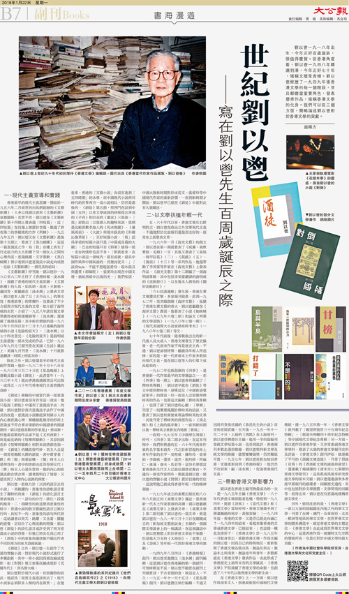 大公報副刊(2018年1月22日)刊出《世紀劉以鬯》