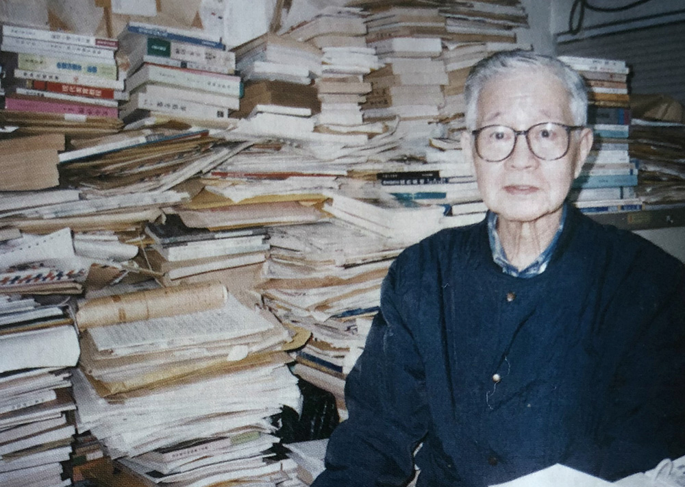 劉以鬯上世紀九十年代初于灣仔《香港文學》編輯部。圖片出自《香港當代作家作品選集.劉以鬯卷》(作者供圖)