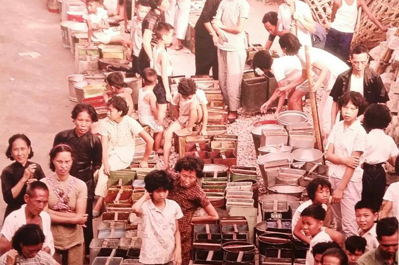 圖:一九六三年香港市民的「水桶陣」輪水苦況\作者供圖