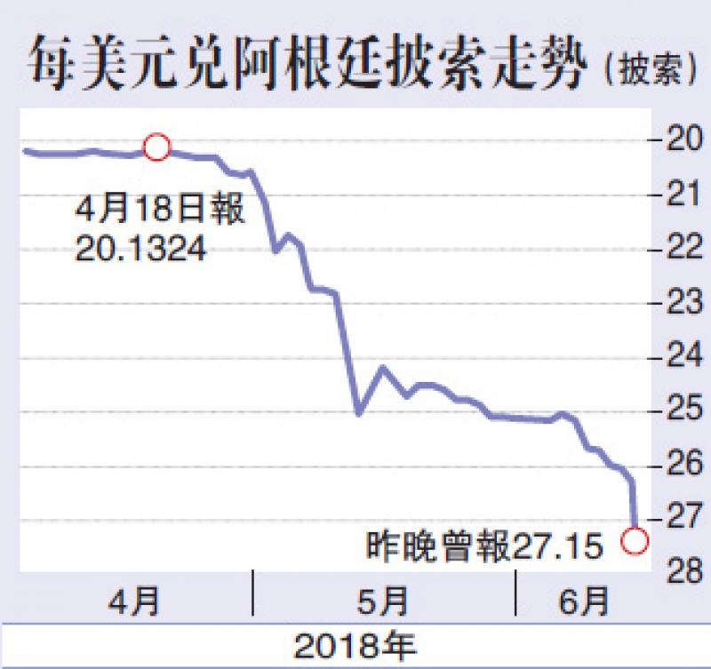 新興市場貨幣方面,受美國加息因素影響,阿根廷披索兌美元曾跌4.99%,每美元兌27.15阿根廷披索,為歷史新低;巴西雷阿爾兌美元亦曾跌1.2%至3.7379。