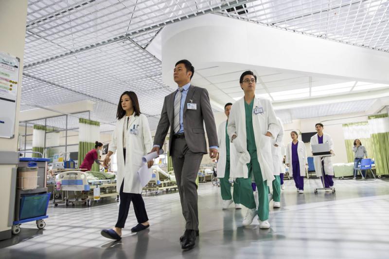 《三人行》以一間醫院為舞台,整個故事就發生在這兒,時間只是短短的幾小時。電影一開始是擺出寫實、專業陣勢的開腦手術戲,最後則以一場脫離現實的大槍戰作為高潮。所謂的「三人」,其一是趙薇扮演的腦外科醫生佟倩,從她的口中,我們知道她十七歲來到香港,學廣東話、學英文、考進醫學院……是一個新來港女孩成功向上流的故事。筆者從身邊有類似經歷的文化界朋友中觀察,快速成功的背後,往往是由強大的自信和正能量支撐,而這種自信,有時反而會變成一種負擔。