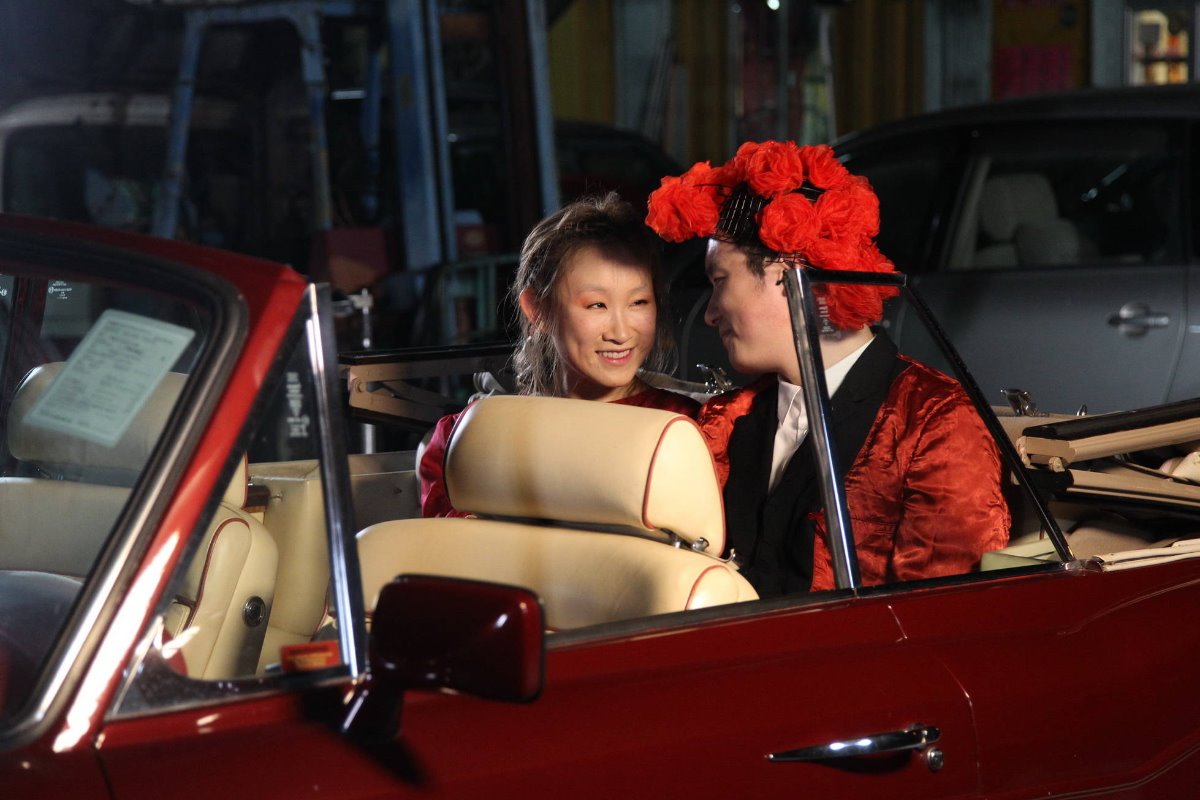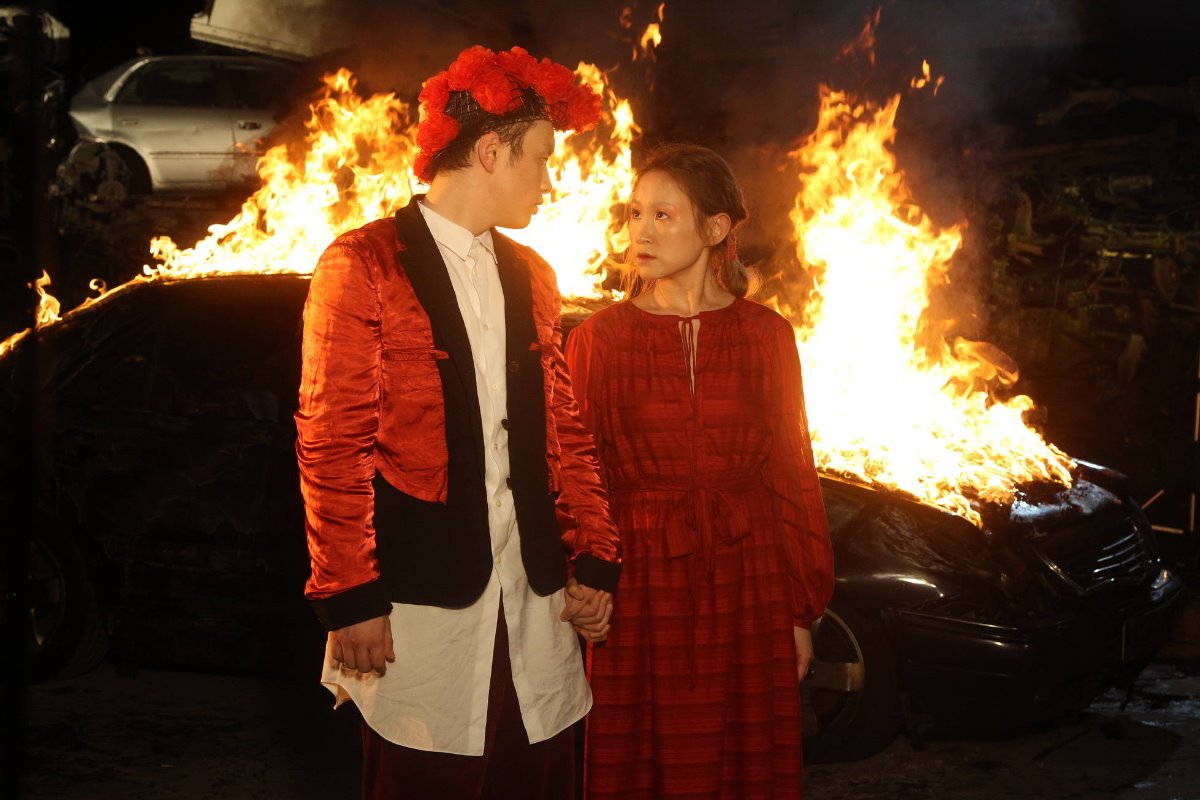 大公網7月25日訊(記者吳珊珊)王菀之(Ivana)日前化身紅衣鬼新娘為新歌《該死的快樂》拍MV,穿上紅色長裙化上鬼新娘妝的她,與戴着紅色頭飾的愛人,在廢車場的一架紅色房車裏談情,倆小無猜玩手指又四目交投,更開心起舞,狀甚浪漫,不過當他們木無表情冷眼看着房車陷入火海時,氣氛令人不寒而慄!