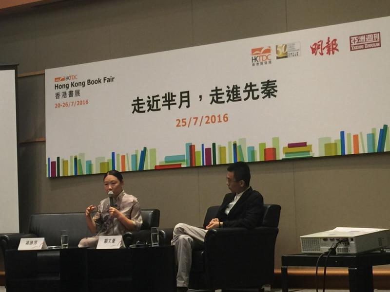 圖:蔣勝男(左)於香港書展主講「走近羋月、走進先秦」 大公報記者劉榕欣攝