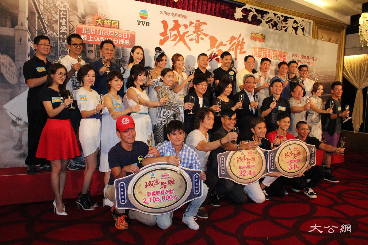 大公網8月23日訊(記者吳珊珊)陳展鵬、胡定欣、袁偉豪、王君馨、伍允龍及劉佩玥等,今晚到將軍澳出席《城寨英雄—城寨福利會晚宴》活動,該劇自推出後收視口碑俱佳,昨晚更取得最高32.4點收視,平均收視31點,無線高層杜之克及曾勵珍亦有到場為大家打氣,並齊齊開香檳祝捷,場面熱鬧。