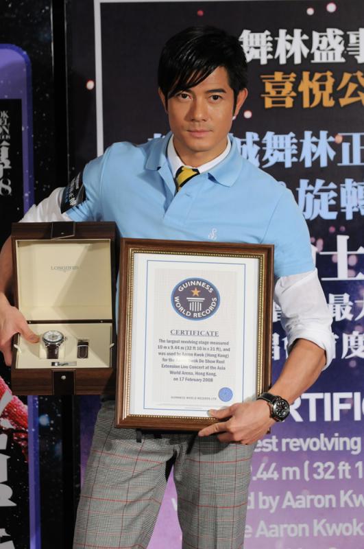 二○○七年尾至二○○八年,Aaron在紅館演出十六場「郭富城舞林正傳演唱會」,耗資三千多萬元搭建了一個450度的巨型旋轉舞台,讓觀眾嘆為觀止。至二○○八年八月,這個舞台被列入健力士世界紀錄大全,成為全球演唱會最大的旋轉舞台,寫下光輝的一頁。當年Aaron接過健力士的證書時,都十分激動。他特別感激經理人小美,並指對方是幕後英雄。Aaron當時表示,一直以來都想有一個突破的演唱會,自己曾得過不少獎項,但這個榮耀在他一生的演藝事業上有很大的紀念性,因為有十七萬觀眾跟他一齊見證,他感到無憾。而能夠為中國人爭光,他已很滿足。