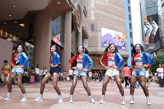 昨日(4日)HKG五位成員(Mary麥淑螢、Silver楊月銀、Phoebe鄧依琳、Vanessa黃夢思、Casey黃顯詩)模仿電影《自殺特攻隊》小丑女Harley Quin的造型,在短短半小時內,殺入銅鑼灣時代廣場、行人專用區、白沙道等人流最多的幾個地方玩快閃,在街頭演唱她們的處女作《讚》,於每個地方都吸引大批路人圍觀,不過當她們預備進入商場的客用電梯時,她們的小丑造型卻嚇着電梯內的兩名男子,十分搞笑。