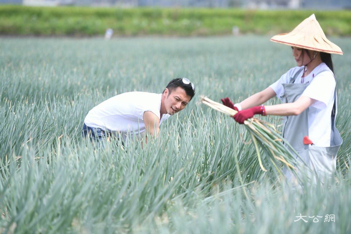 謝霆鋒及舒淇同到田裡摘蔥製作葱油餅