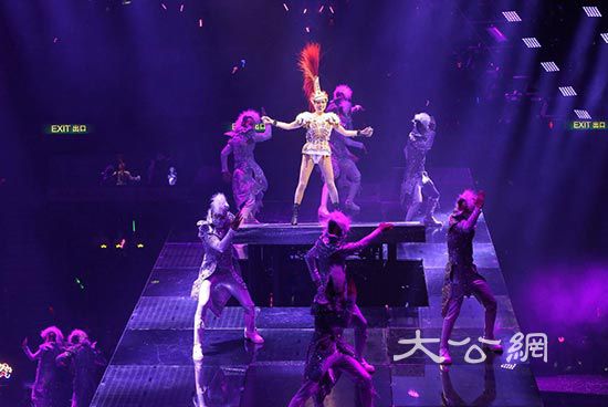 鄭秀文在高台上勁歌熱舞,其間差點失平衡,令台下觀眾都嚇一跳/吳珊珊攝