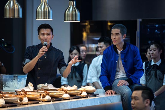 而在鋒味餐廳之中,蕭敬騰更為謝霆鋒獻出了自己的「看門絕技」-毃擊樂。蕭敬騰帶領鋒廚用廚具奏出一段精彩絕倫的「廚房打擊樂」,high翻全場。