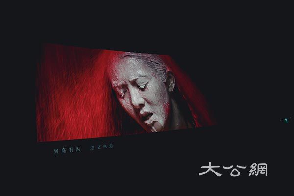 Juno在mv被紅色液體淋面。(攝:溫穎芝)