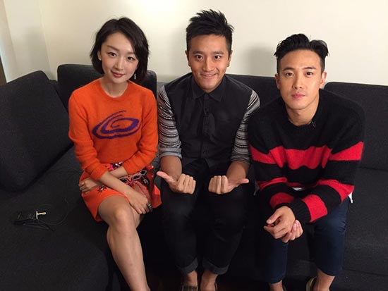 (左至右) 周冬雨、主播許文軒(Edmond)及曾國祥(Derek)