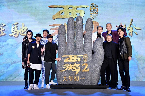 周星馳與徐克率領新片《西游伏妖篇》的演員一起出席發布會