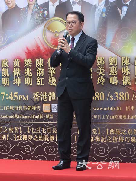 大公網7月9日訊 記者周怡報道:由新娛國際及香港旅遊發展局主辦的「粵劇寶典紅館巨星匯演唱會2017」,將於八月四日在香港紅磡體育館舉行,門票定於本月十一號公開發售。新聞記者會今日於海利公館舉辦,新娛國際負責人丘亞葵連同多位粵劇名伶、老倌出席。