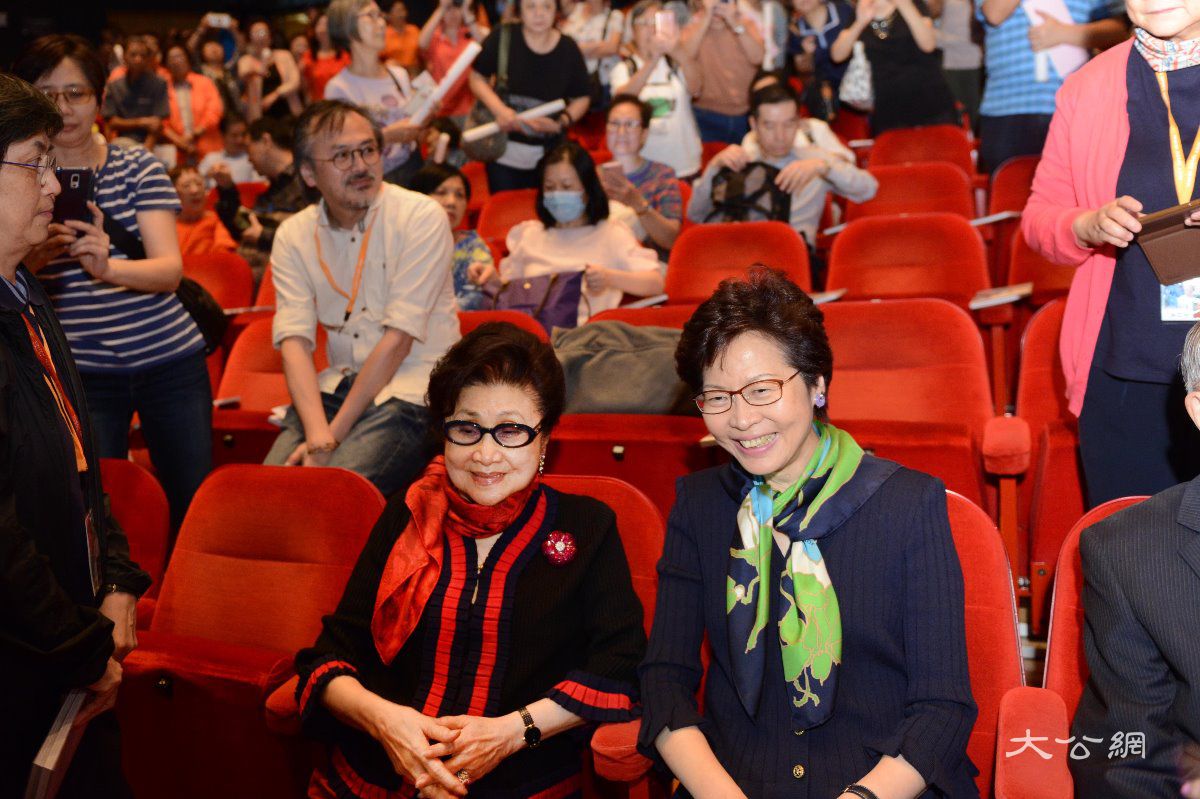 大公網7月14日訊 14(陳惠芳):為紀念唐滌生百歲冥壽,任白慈善基金會主辦、由陳寶珠、梅雪詩、任冰兒、尤聲普、廖國森等主演的粵劇《蝶影紅梨記》,前日起於文化中心一連公演十七場。特首林鄭月娥除送上花藍外,更親自到場觀賞。藝術總監白雪仙(仙姐)陪着特首觀看直到完場。特首於中場 林鄭月娥於中場休息時曾到場外拍照,沿途觀眾紛紛向她揮手,又鼓勵她努力加油,大受歡迎,有位小朋友更成功和特首合照。到下半場開始,特首和仙姐再次進場,觀眾叫她們的聲音此起彼落,二時被讚該劇好看。