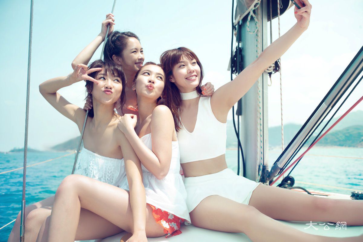 大公網7月24日訊(記者吳珊珊)顏卓靈(Cherry)、朱千雪、蘇麗珊(Cecilia)及香港游泳選手歐鎧淳(Stephanie),日前揚帆出海,為激光脫毛中心拍攝全新一輯網上宣傳廣告,臨上船時更發生小趣事,Cherry 向 Stephanie 笑說自己不懂泳術,要 Stephanie 好好保護她,在場工作人員立即起哄尋求女飛魚的保護,令 Stephanie 哭笑不得!四位女生已經很快打成一片,Stephanie 更化身攝影師為 Cecilia、Cherry 拍照,最具儀態的千雪則從旁指導。