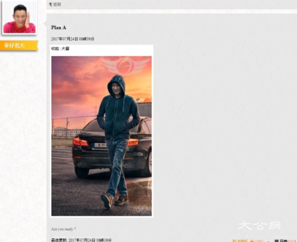 工作狂的華仔,看來巳密鑼緊鼓工作,今日他在天地貼上一張新相,雖然只是《俠盜聯盟》的電影海報,但就留言問fans:「Are you ready?」言下之意,莫非他復出在望?