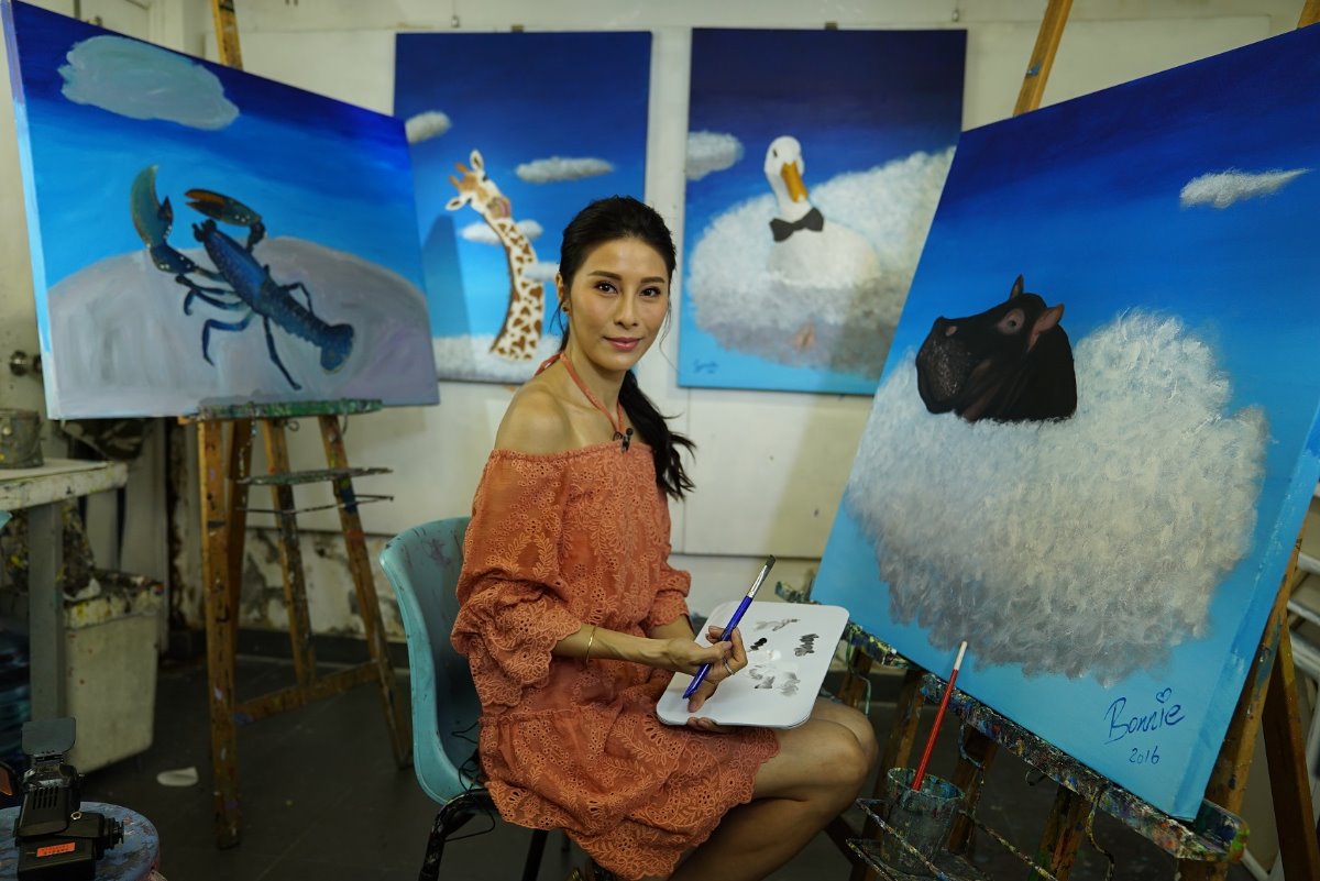Bonnie原來最喜歡的是畫畫,不經不覺她已習畫近10年,最近還和兒子在同一間畫室學畫。Bonnie不諱言畫畫確實有修心養性作用,她說:「以前我好火爆,很易黑面發脾氣,現在我會學懂放慢,學會修養。」