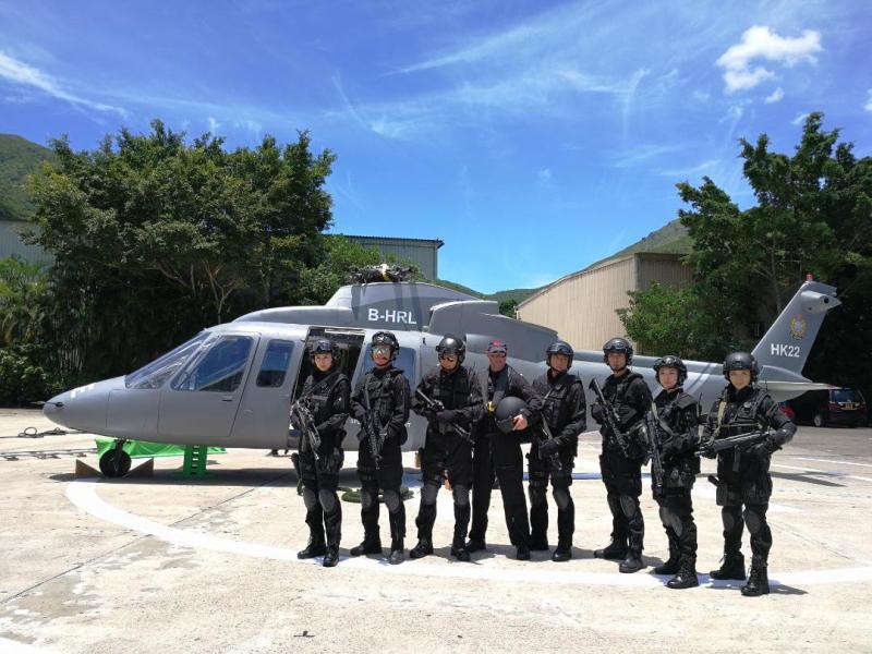 一眾演員在直升機前拍照,甚有氣勢。吳珊珊攝