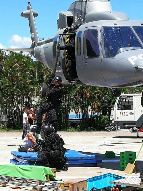 吳卓羲在直升機上游繩而下。 吳珊珊攝