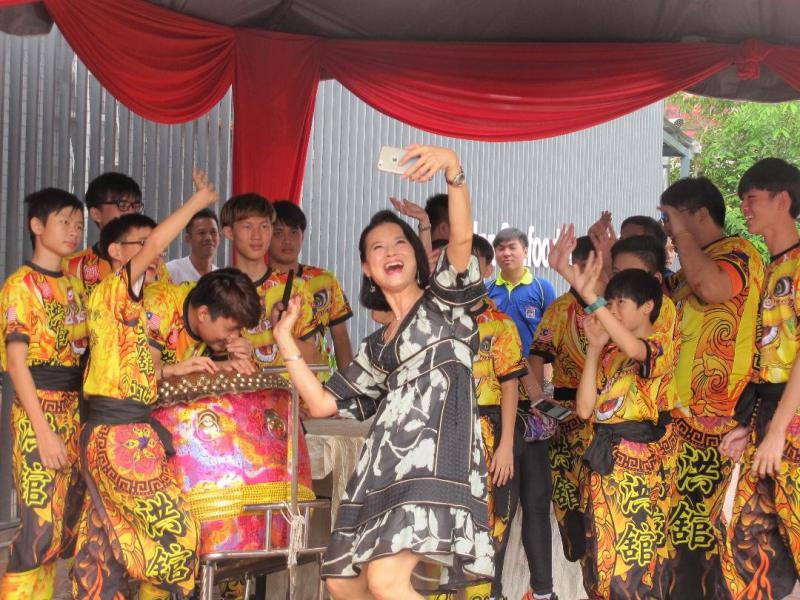 黎燕珊與舞獅隊成員自拍留念
