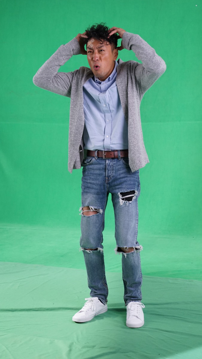 黑仔說:「今日扮了成龍大哥、姚明、苗僑偉三哥,又有個樣叫黑人問號,好好玩。其實要扮回他們當下的感覺及表情角度有點難,但今日我們花了很多時間研究,最終效果是似的,都幾滿意。」