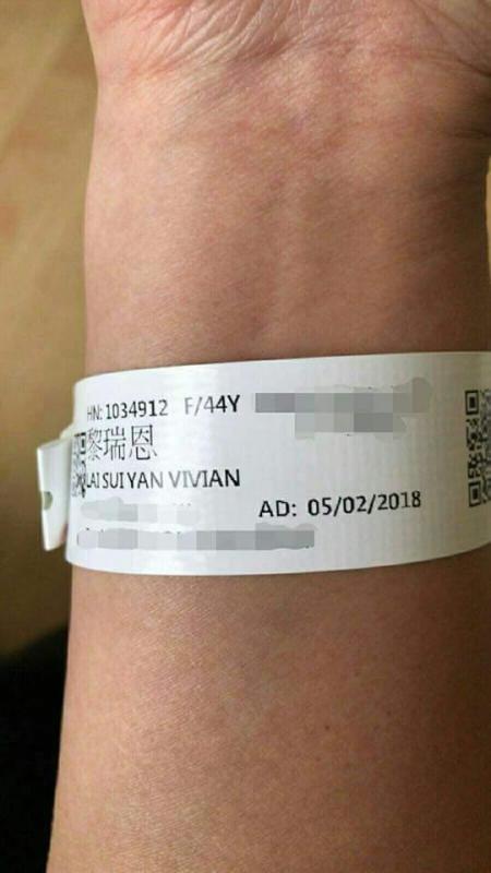 黎瑞恩其中一隻手戴着醫院的手帶