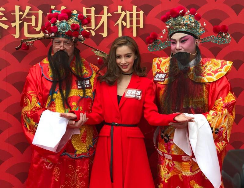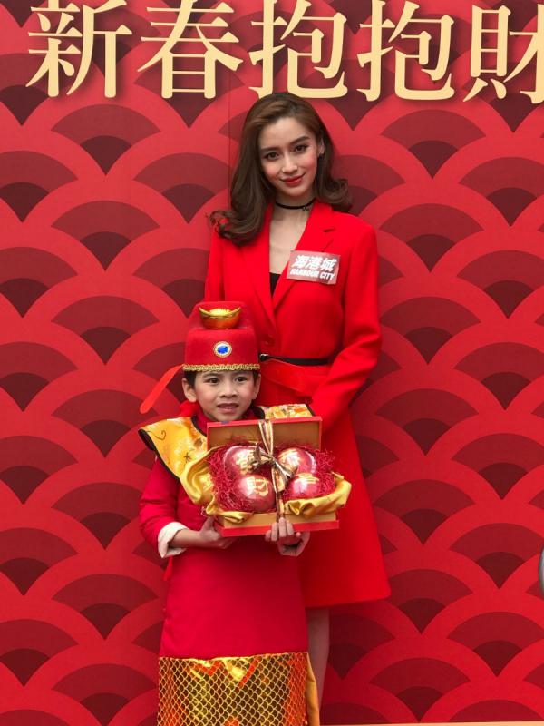 大公網2月7日訊(記者吳珊珊)Angelababy(楊穎)今早到尖沙咀出席海港城的抱抱財神活動,一身紅衣的Baby,接受打扮成可愛小財神的小朋友送上五代同堂、橎桃、紅花、桃花及年桔共五份開運擺設,連剛滿一歲的兒子小海綿也有禮物,到最後的抱抱財神環節,大會安排中、西財神讓Baby抱抱,預祝她來年賺個盤滿砵滿。