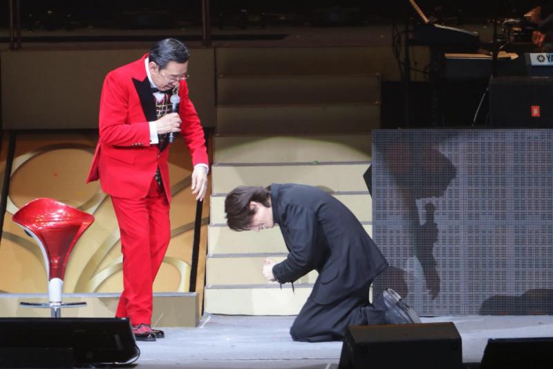 大公網2月12日訊(記者吳珊珊)86歲高齡的胡楓(修哥),兩場《胡楓86破曬紀錄演唱會2018》在紅館完滿結束,修哥指很多朋友驚喜現身支持,令他非常感動,「是我人生最開心的演唱會」。尾場的嘉賓依然陣容鼎盛,但最大驚喜一定是黃子華,子華出場時全場起哄,連修哥都十分喜出望外,他又搞笑地拿張椅子上台給修哥坐,兩人一來一往放笑彈,最後子華更向修哥下跪!另外張學友再度越洋支持契爺,人在新加坡開騷的學友,隔空送上一首《月半彎》給修哥。而再擔任嘉賓的張家輝,再展歌喉唱《假如真的再有約會》,壓場感十足。