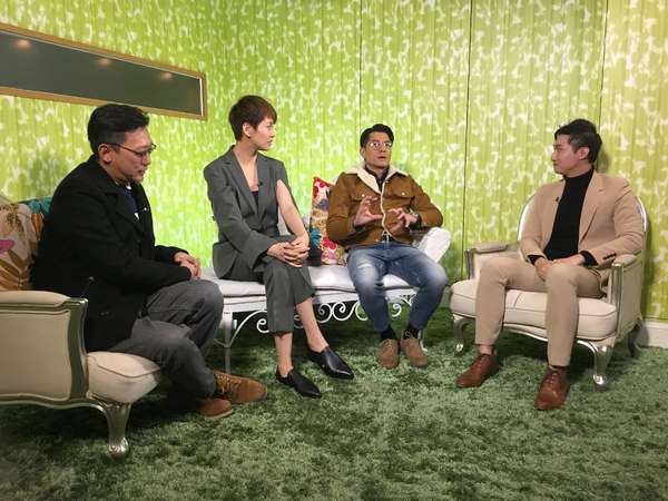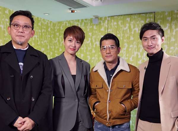 左起:鄭保瑞、梁詠琪及郭富城接受嚴崇天訪問。(發相)