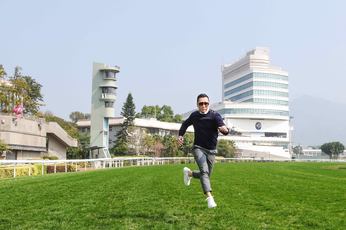 大公網2月22日訊(記者 吳珊珊)一年一度的《香港打吡大賽》將於3月18日於沙田馬場舉行,此項只限四歲馬匹參與的賽事,總獎金高達一千八百萬港元,是馬匹一生一次至高榮譽。影星甄子丹再度獲邀擔任「香港打吡大使」,日前他專程往沙田馬場拍攝活動宣傳海報,在綠草如茵的跑道上興奮跳躍拍照留念,以及首度獲邀前往平日不對外開放的「騎師過磅室」和「騎師休息室」參觀,其間更遇上是他粉絲的騎師一同閒聊和合照。