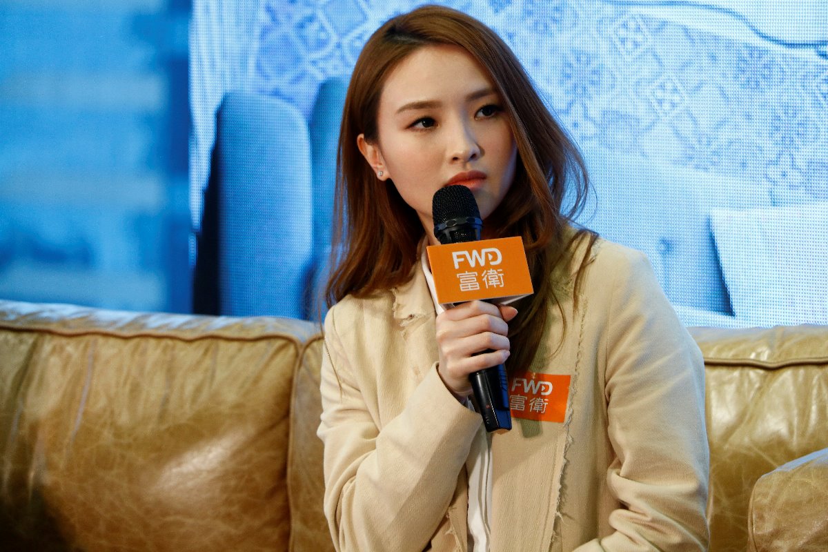 林欣彤於台上和勉勵觀眾克服情緒病