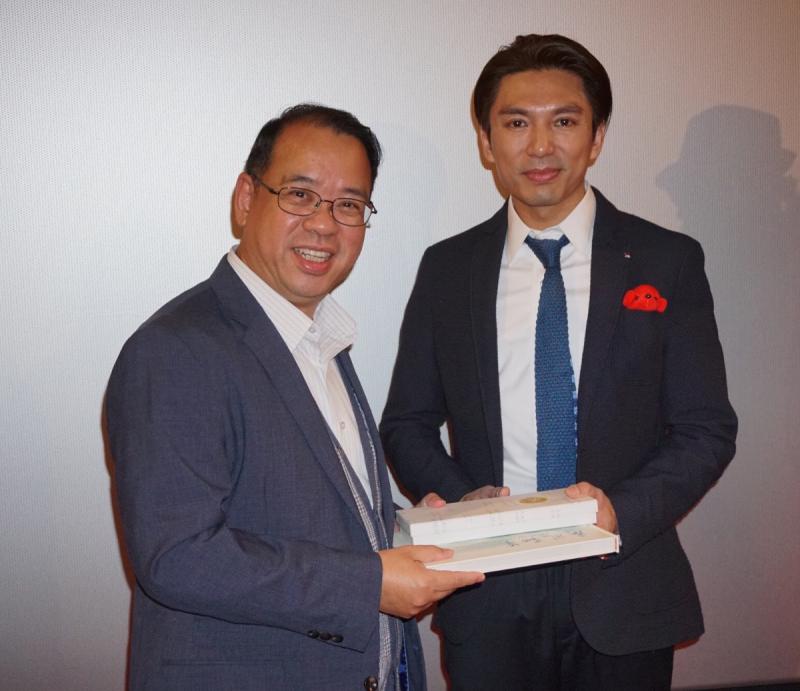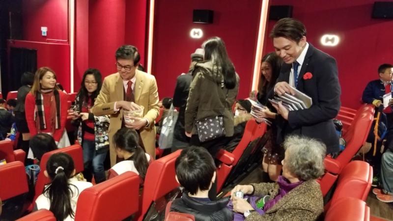 兒童危重病基金創辦人郝霍麗娜女士向一眾嘉賓送上紀念品,以示答謝。 黃百鳴說:「一次機緣認識到這個機構,又剛好今年狗年,我們有部狗狗電影好適合小朋友睇,所以攪咗今次活動。」