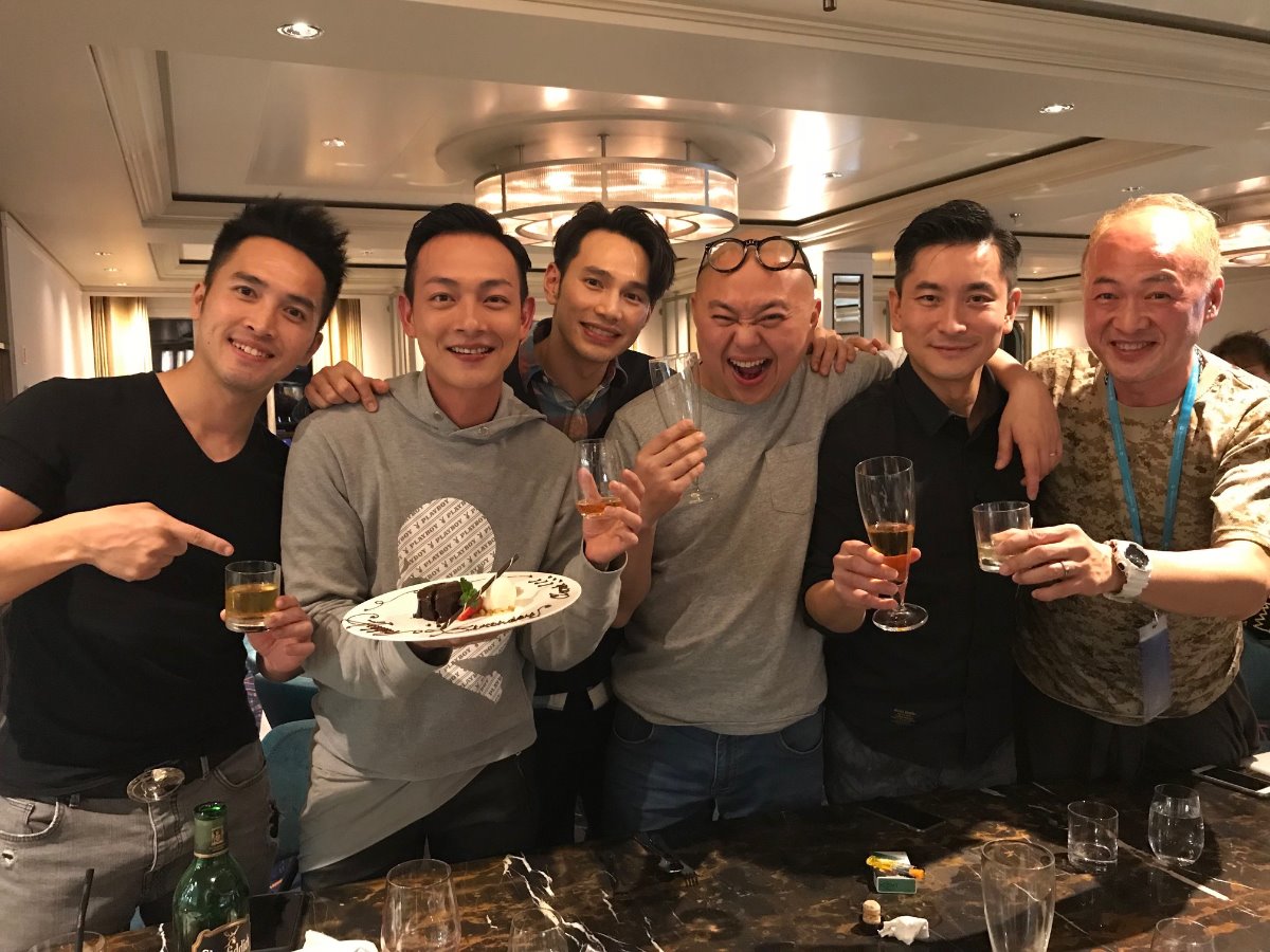 大公網3月26日訊(記者 温頴芝)「兄弟幫」幾位成員林盛斌(Bob)、梁烈唯、王梓軒、范振鋒、陳國峰(Penny)日前到郵輪登台,一眾兄弟做show賺錢之餘、亦齊為生日的唯唯慶生。
