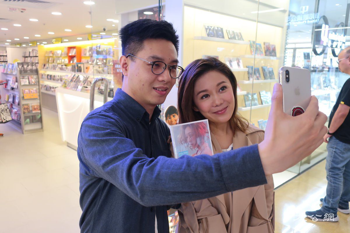 大公網4月6日訊(記者溫穎芝) 胡琳(Bianca)最新專輯《Moments》今天正式面世,她一大早跑到太古城一唱片店買碟,希望取個好意頭,其間巧遇一男一女Fans前來掃貨,並走近偶像欲索取簽名兼合照,親民的Bianca都有求必應。