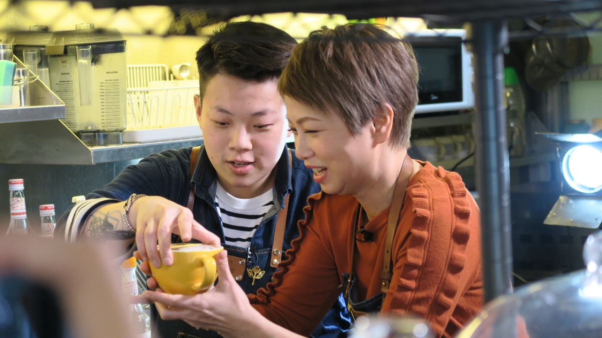 原來店裡七成員工都是聽 障人士,老闆娘利用手語及身體語言與員工溝通。劉玉翠向弱聽咖啡師Zita拜師,學習沖泡咖啡,並成功沖出人生中第一杯拉花咖啡。 對於老闆娘這份愛心 ,劉玉翠表示尊敬,形容對方是現實中的女俠。