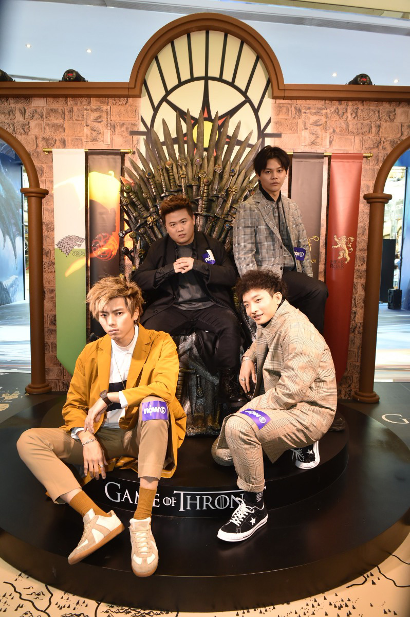 劇中最人所共知的定必是象徵權力核心的「鐵王座」。是次展覽將這張重達600磅的「鐵王座」及全長6米、重逾3000磅的巨型冰龍 呈現在香港「權迷」眼前,權迷更可一登皇座體驗7大王國統治者的皇者視覺。這歷史性一刻讓組合四位成員包括肥仔(梁業)、阿Dee(何啟華)、193(郭嘉駿)以及保錡(吳保錡)也被吸引到來,更笑說要從中偷師學藝,實行大玩騎呢搞笑,用創意殺出一條血路! !