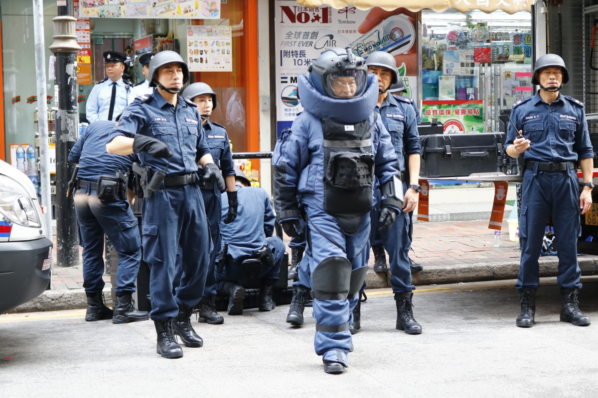 大公網4月26日訊(記者 吳珊珊)劉德華、劉青雲、吳卓羲、黃德斌及趙永洪等,今日現身尖東鬧市為電影《拆彈專家2》拍攝一場爆炸戲,其間劇組除了出動多部警車、救護車、拆彈車及沙包陣外,又動用了半百臨時演員上陣拍攝,現場非常大陣仗,幾可亂真。