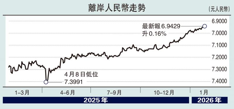 2025年底離岸人民幣兌美元匯率突破7的整數關口並持續回升,筆者認為,主要受到三個關鍵性因素驅動。