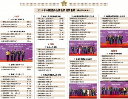 2025年中國證券金紫荊獎獲獎名單(排名不分先後)