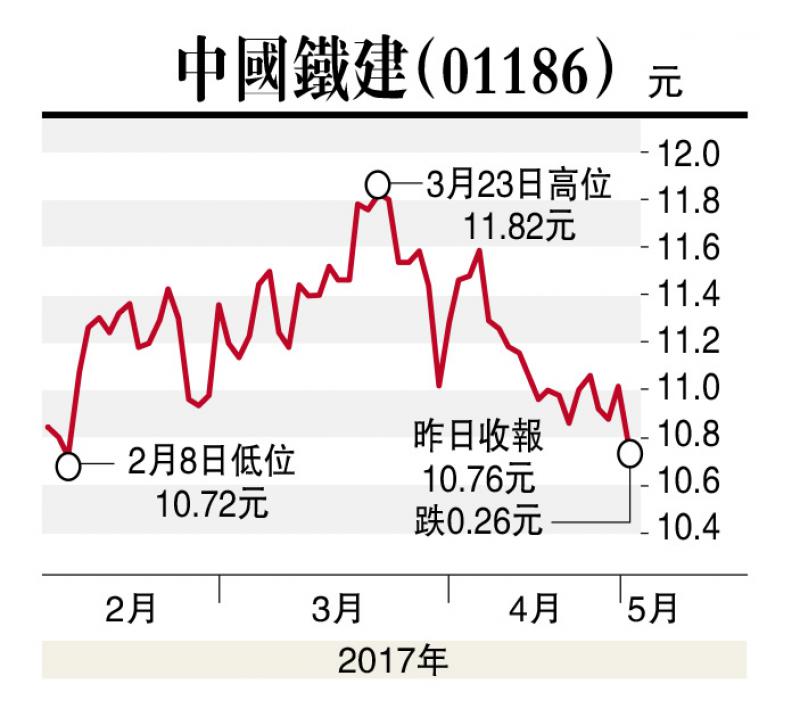 中央推動PPP發展模式及運用積極財政政策的方針,支持基建行業的業務表現自去年中開始呈現較佳增長。基建工程龍頭企業之一的中鐵建(01186)今年首季業績表現穩中向好,配合國家規劃「一帶一路」所帶來的增長潛力,走勢表現有望維持反覆偏強。