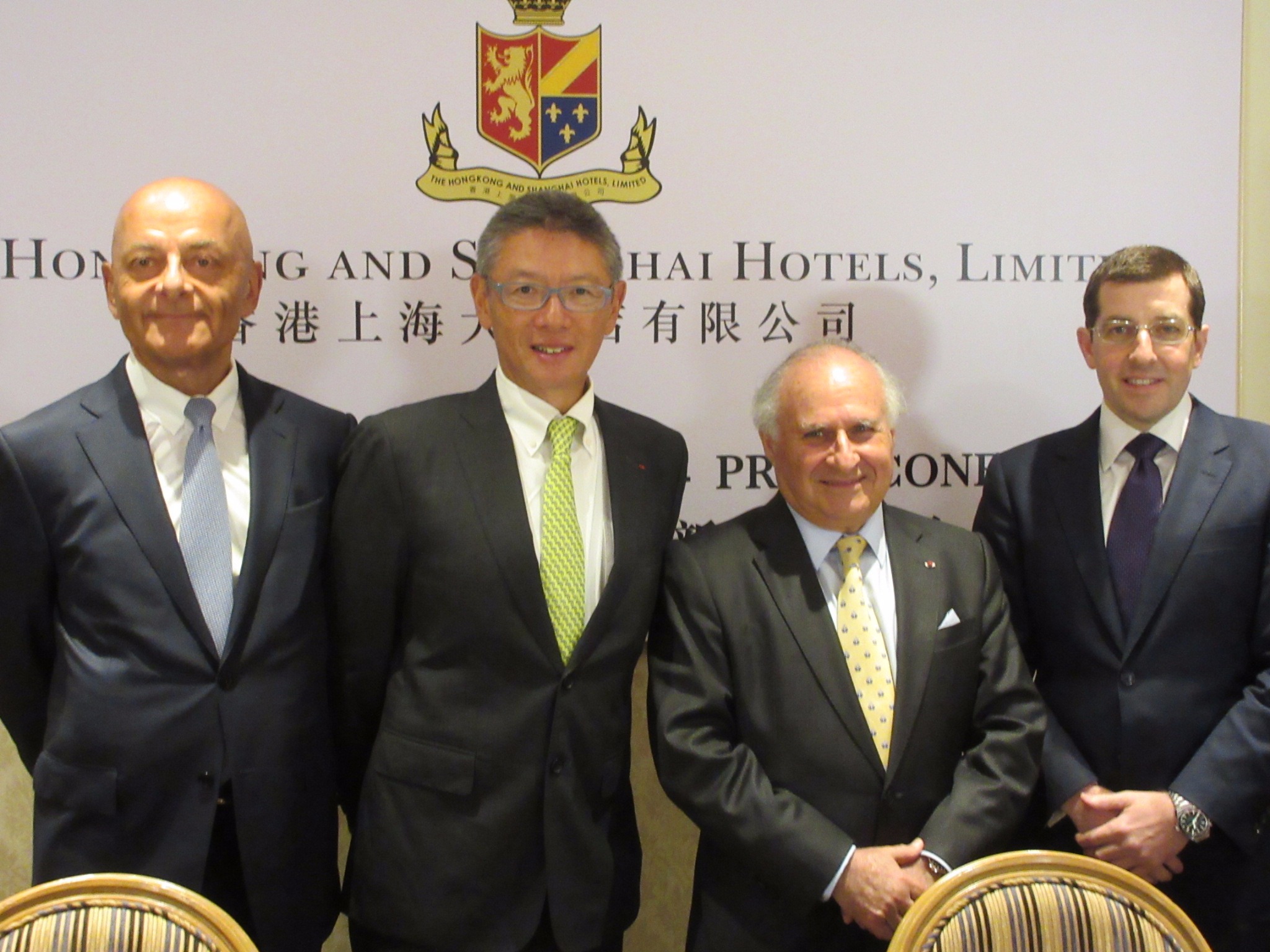 (左起)大酒店營運總裁包華、董事總經理及行政總裁郭敬文、主席米高嘉道理、財務總裁馬修。(大公報記者李潔儀攝)