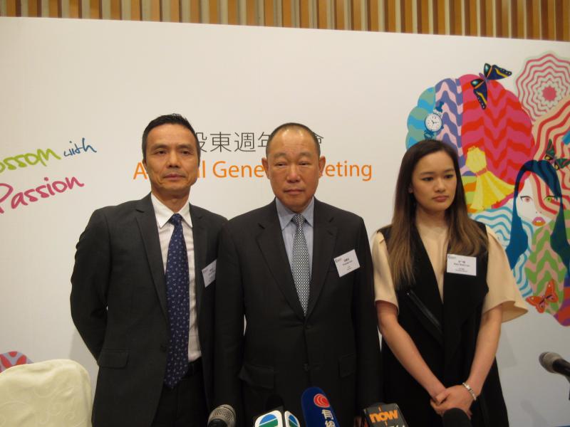 (左起)利福國際財務總監潘福全、主席劉鑾鴻、執行董事劉今蟾。(大公報記者李潔儀攝)