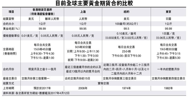 港交所2008年曾推出實物黃金期貨,但成效不佳。張墨陽解釋,是次實物黃金期貨與2008年有多種分別,例如2008年時用現金結算、成色要995以上,而今次是以實物在香港交割、以美金及人民幣計價、成色9999,每單位為公斤條。他表示,是次合約較適合亞洲投資需要。