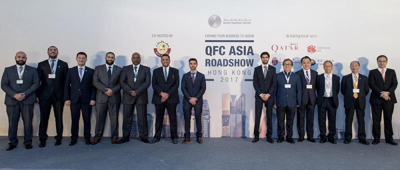 圖:卡塔爾駐港總領事(左六)、卡塔爾金融中心管理局成員及本地協會代表共同出席QFC亞洲路演香港站
