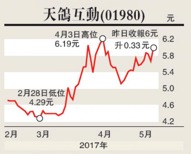 天鴿互動(01980)較早前公布2016年止年度業績,收益8.34億元人民幣,按年增加23.1%,主要受集團的手機在線直播業務強勁增長所致。其間,錄得純利增長53.6%至2.33億元人民幣。