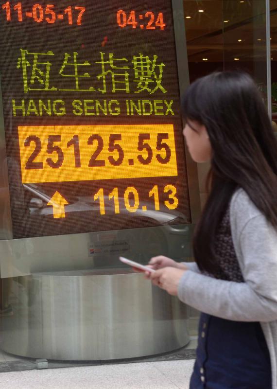 圖:港股昨日上升過百點,恒指四日累積升幅逾六百點