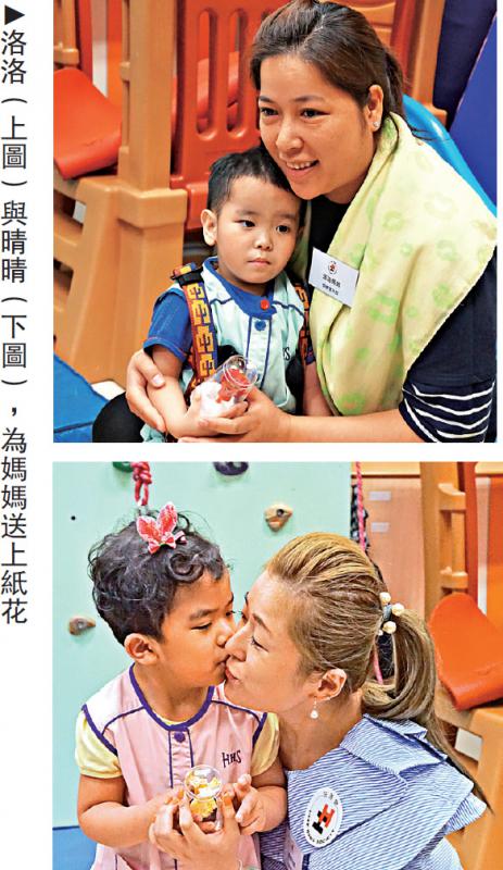 圖:洛洛(上圖)與晴晴(下圖),為媽媽送上紙花