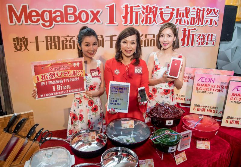 MegaBox 總監文靜芝(中)表示,今次推廣有數十間商舖逾千件貨品以1折發售。